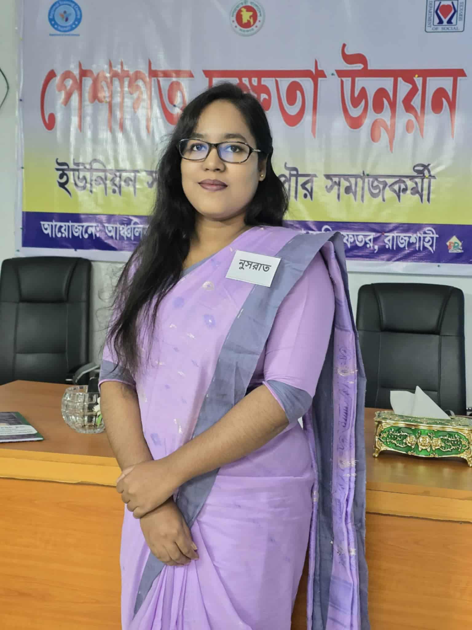 | ৫ | নুসরাত জাহান | ইউনিয়ন সমাজকর্মী | rapynusrat100@gmail.com | 01330113521 | | দেখুন |